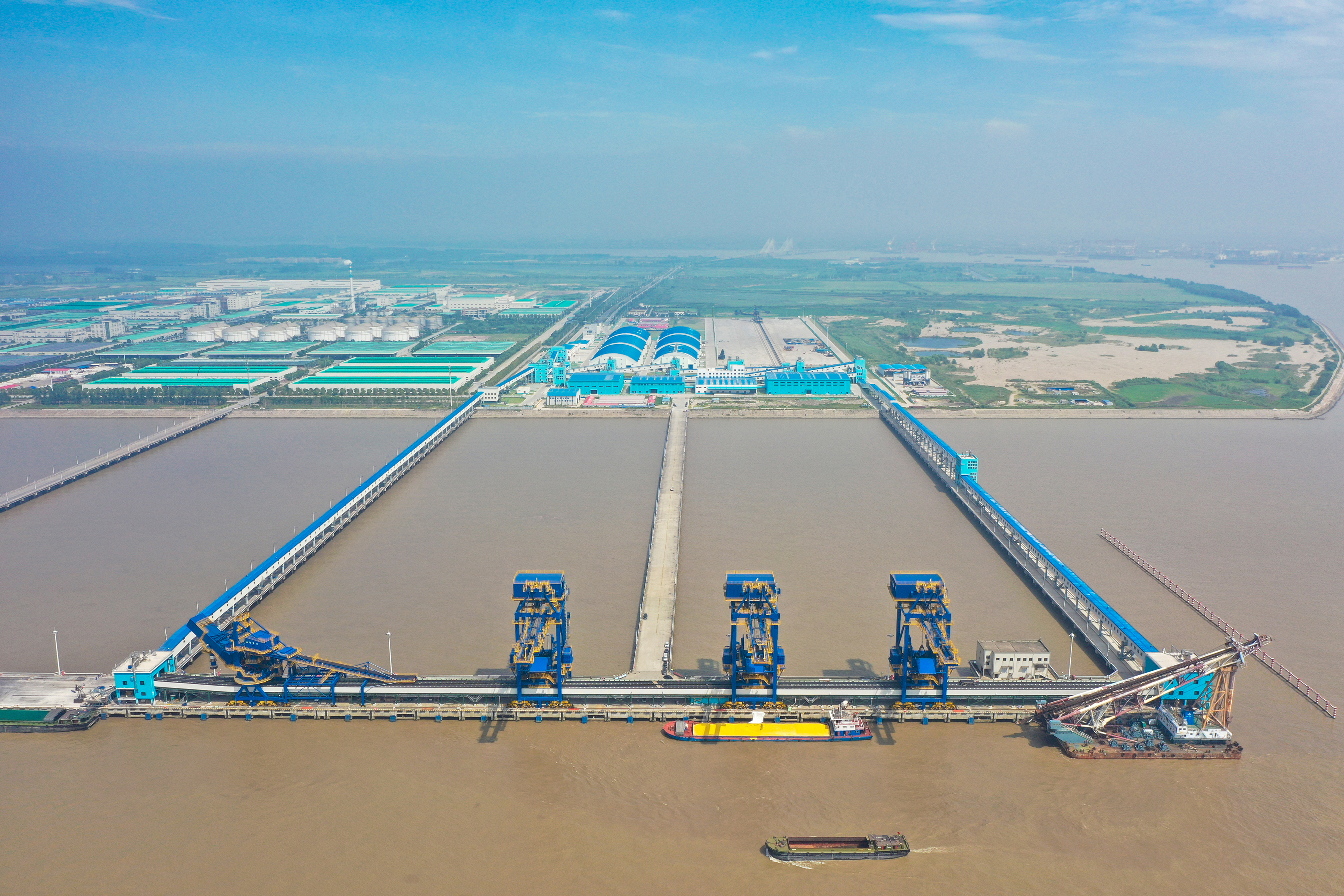 橫港沙3#-4#泊位改造工程是南通港(港口)集團(tuán)貫徹落實(shí)市委市政府“優(yōu)化沿江產(chǎn)業(yè)布局、推動(dòng)長江大保護(hù)”工作要求,承接南通主城區(qū)老港區(qū)搬遷轉(zhuǎn)移的重點(diǎn)工程,主要建設(shè)1個(gè)7萬噸級和1個(gè)1萬噸級散貨泊位。項(xiàng)目于2018年3月開工建設(shè),積極應(yīng)用“四新”技術(shù)及信息化管理,在工程進(jìn)度、技術(shù)、安全、質(zhì)量、文明施工等方面創(chuàng)新突破,其“輸送機(jī)抑塵防雨覆蓋帶”等三項(xiàng)新技術(shù)應(yīng)用刷新全國紀(jì)錄,工藝系統(tǒng)在全國同類散貨裝卸碼頭中處于領(lǐng)先水平,榮獲江蘇省公路水運(yùn)工程平安工地建設(shè)省級“示范工程”、江蘇交通優(yōu)質(zhì)工程“蘇暢杯”等稱號。項(xiàng)目于2021年投產(chǎn)運(yùn)營并獲批對外開放,傾力打造長江沿線綠色環(huán)保、高效一流的現(xiàn)代化散貨專業(yè)碼頭,構(gòu)筑南通港高質(zhì)量轉(zhuǎn)型發(fā)展西部陣地“橋頭堡”。